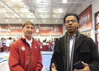 Kerry Adderly, interviews Mark Williams, head coach for the Oklahoma men’s gymnastics about his team performance at the 2017 IntraSquad Scrimmage which was held...
