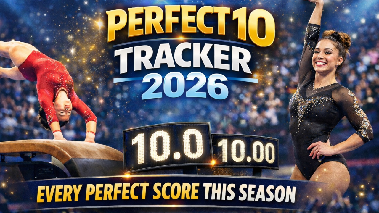 Perfect 10 Tracker 2026 featured image with scoreboard and gymnasts